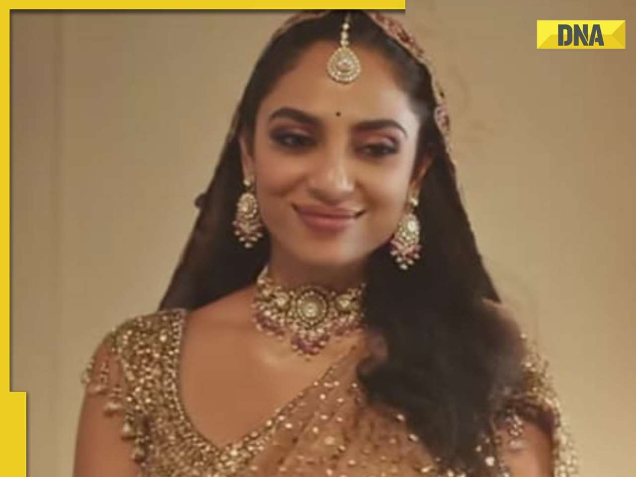 Sobhita Dhulipala imponeerde in een gouden lehenga met een bordeauxrode dupatta, waarbij traditionele bruidselegantie werd gecombineerd met een moderne, stijlvolle look. Haar eenvoudige make-up, minimale sieraden en klassieke kapsel completeerden het tijdloze ensemble.