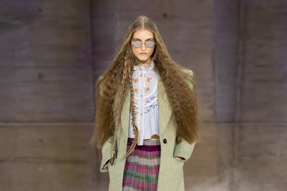 Als Chloé het personage is, had ze dit herfst/winterseizoen 2026 iets folkloristisch aan haar jurk, met vage Tiroolse breisels, mooie prairieblouses en natuurlijk zwierige, doorschijnende zigeunerrokken met ruches, boho-a-go-go. Mensen in jurken zijn een cliché, en folkloristische jurken bij Chloé zijn ongetwijfeld cliché op cliché. Toch is het ook een waarheid: het is hoe Karl Lagerfeld (hij weer) het label voor het eerst op de voorgrond bracht. Zijn theejurken met lingerielook leidden tot afleiding naar de grimmige realiteit tijdens de Jom Kipoeroorlog en de oliecrisis van 1973, die tegenwoordig overigens ongemakkelijk verschillende parallellen vinden.