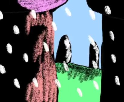 In beide video’s worden natuurlijke beelden en menselijke figuren naast elkaar getoond. In Processieeen figuur gaat door een kleine open deur voordat hij een rots met de maan in een baan om de aarde brengt. Terwijl binnen Plotselingeen rennend persoon verandert in een slak voordat hij in een hongerige wolf verandert. De gezichtsuitdrukkingen zijn ook bijzonder levendig in de video, getekend door Orfeo met knipogen naar zijn houtsnijwerk, met wat hij beschrijft als ‘mythische personages met een grote glimlach of tranen.’