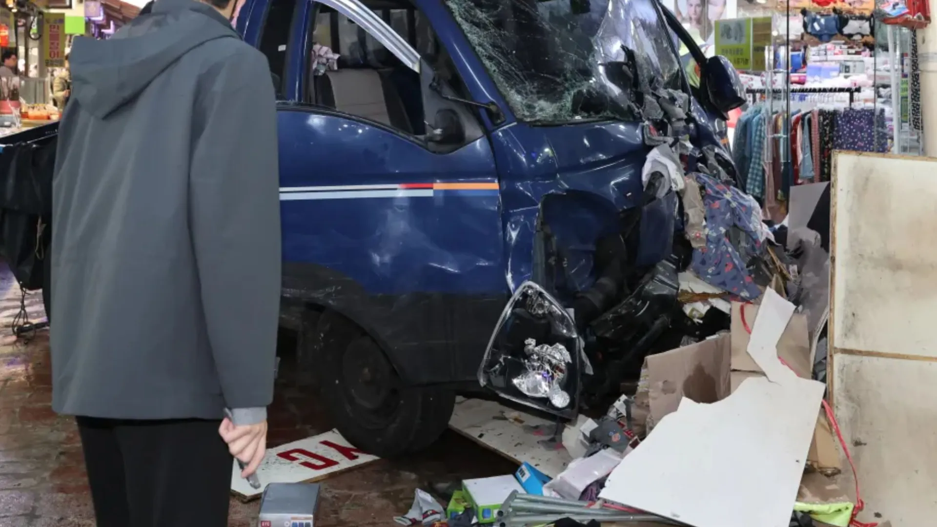 Op camerabeelden die op de Koreaanse televisie werden uitgezonden, was te zien hoe winkelend publiek op een openluchtmarkt bezig was, voordat een blauwe vrachtwagen door een doorgang met kraampjes accelereerde en tegen een van de winkels botste.